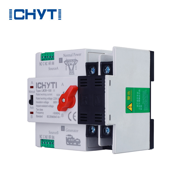 Automatyczny przełącznik zasilania ICHYTI 100 A w fabryce w Chinach jest idealny do systemów zasilania awaryjnego o napięciu znamionowym 400 V i 100 A AC przy 50 lub 60 Hz. Kompaktowa konstrukcja, niezawodna funkcja przenoszenia, łatwa instalacja i konserwacja oraz długa żywotność sprawiają, że jest to popularny wybór. Automatyczny przełącznik zasilania 100 A nadaje się do różnych zastosowań, w których niezbędne jest ciągłe zasilanie i może być obsługiwany zarówno elektrycznie, jak i ręcznie. Automatyczny przełącznik zasilania 100 A serii LW2R jest zgodny z wymaganiami normy IEC60947-6-1 dla rozdzielnic i sterownic niskiego napięcia.